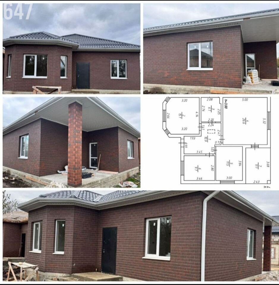 Продается дом, один этаж, три комнаты. Общая площадь 100 м², площадь участка 3 сот. Одноэтажный дом, кирпичный, год постройки 2025. Электричество 380 вольт, туалет в доме, есть техническая возможность подключить газ, своя скважина, автономное электрическое отопление, чистовая. Все вопросы по телефону.
