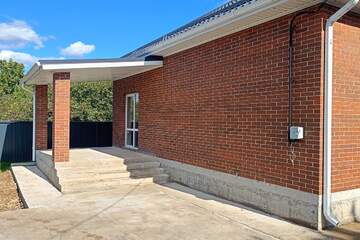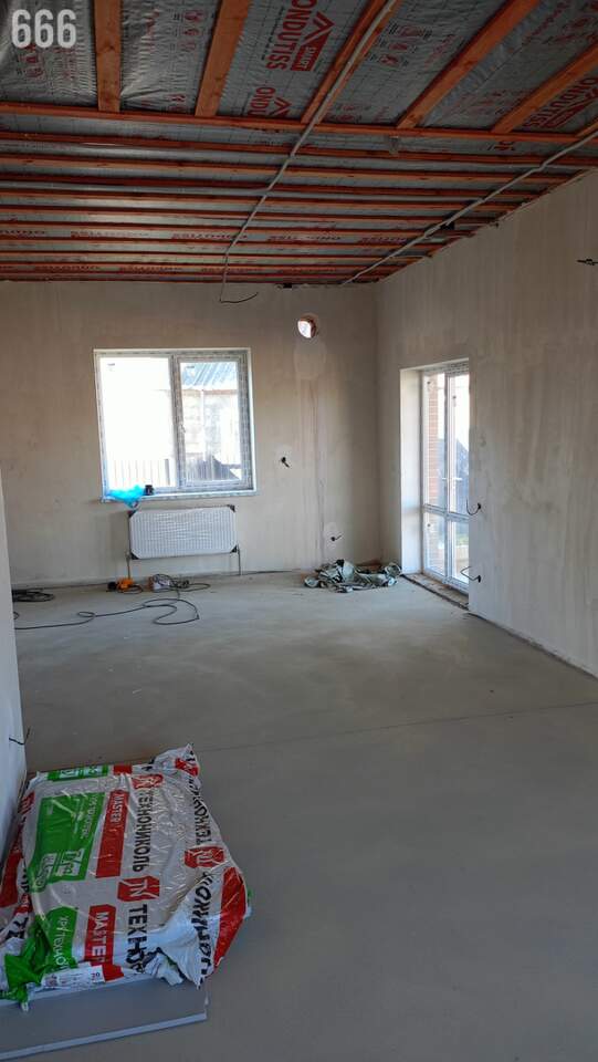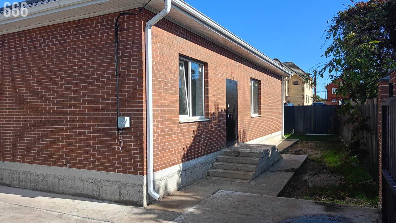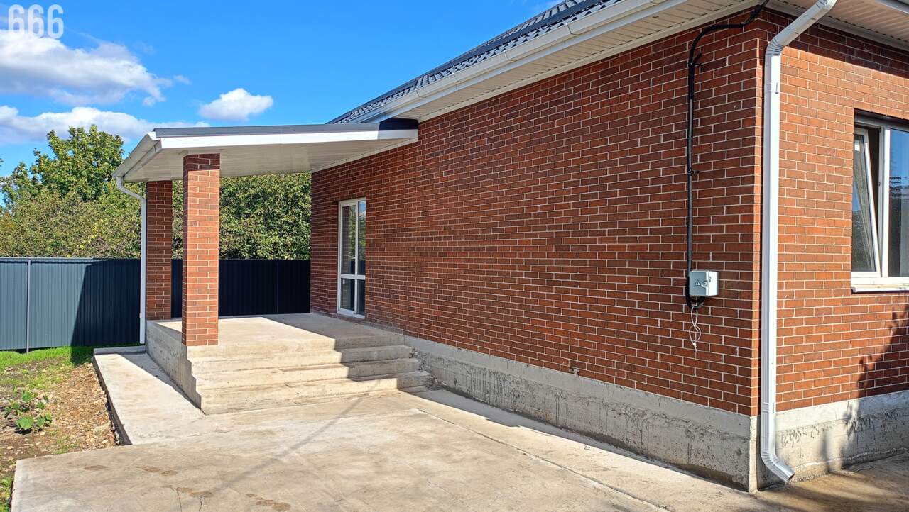 Продается дом, 1 этаж, три комнаты + кухня-гостинная. Площадь 125.8 м2, участок 4.5 сот. Одноэтажный дом, газобетонный блок, построен в 2025 г. Водопровод подключен, чистовая, автономное газовое отопление, электричество 380 вольт, туалет в доме.
