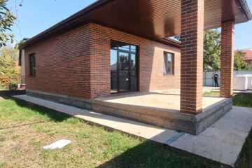 В продаже дом, одноэтажный, 3 комнаты. Общая площадь 90 кв.м., площадь участка 4 сот. Одноэтажный дом, кирпичный, постройка 2025 года. Туалет в доме, электричество 220 вольт, чистовая, своя скважина, есть техническая возможность подключить газ.
